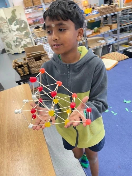 Students in the elementary classroom work on exploring concepts and ideas on a schedule determined, in part, by personal interest. The learner may focus for a period of time on a particular subject area, infusing an incredible amount of attention and energy into the process. At these times, the teacher monitors the student's progress, guiding and recording, while maintaining the learner's engagement and focus. Through teacher guidance, group interaction, stimulating materials and all that the classroom environment has to offer, the learner's interest will inevitably lead them to experience a variety of subject matter and allow for a strong, varied academic base.